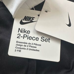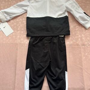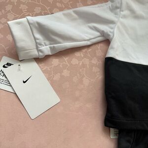 Brand new, Nike Baby Boy Dri Fit Full Zip Jacket and Pant Set. Size 9 months. Black and white.