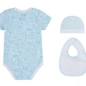 Nike Baby Boys 3-Piece Box Set 0-6 Months Glacier Blue Bodysuit Bib Hat NWT