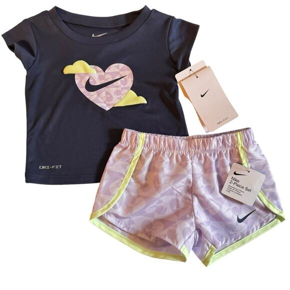 Nike Baby Girl Matching Shorts & Crew Neck Logo Tee Set Sz 12 M NWT