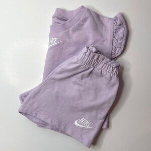 Nike Baby Girls 2 Piece Purple Outfit Set 18M Ruffle Sleeve Top Shorts Athletic