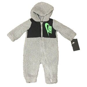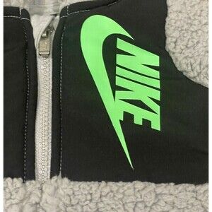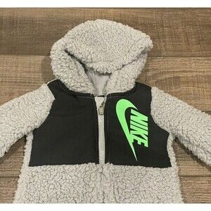 Nike Baby Hooded Full Zip Sherpa Coverall Bunting Grey Black & Green Unisex Size 6 Months New
