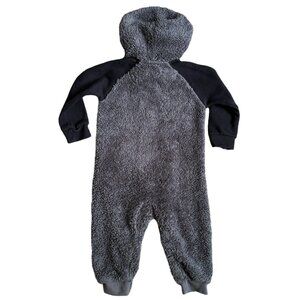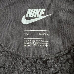 Nike Baby Hooded Sherpa Coverall Onesie 12M Gray Black Full Zip Long Sleeve