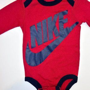 Nike Baby Sz 0-6 Months 0/6M One Piece Bodysuit Red Swoosh Logo Long Sleeves in excellent condition.