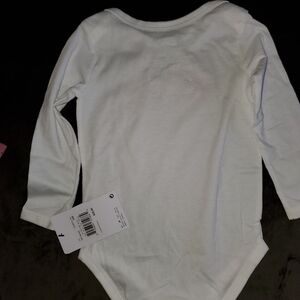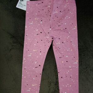 Adorable Nike baby set featuring a white long-sleeve onesie and pink leggings. Perfect for a stylish look.