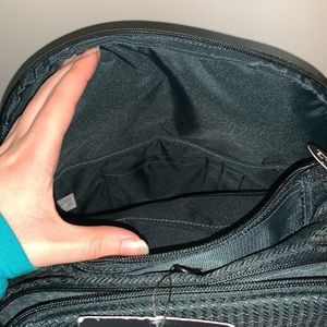 2) A second large compartment similar to the back-most one but does not have a laptop compartment