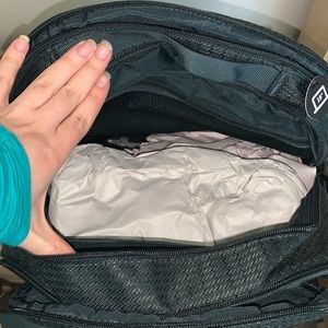 1) The back-most compartment is the laptop compartment and then you can place some books or other items as well. This compartment also has a pens/pencils pockets
