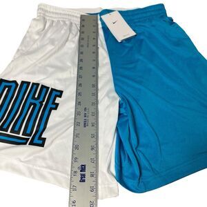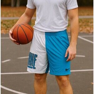 Nike Basketball Shorts Large Blue White Split Two Tone Logo Athletic Gym