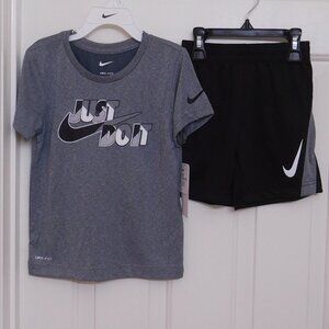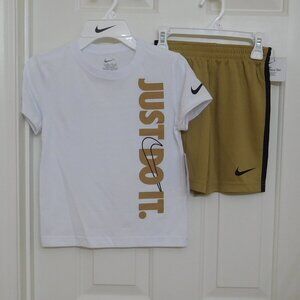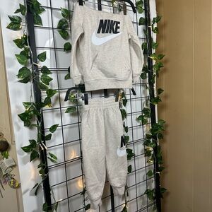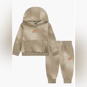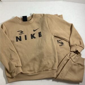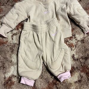 Charming Nike baby outfit in beige. Features a cozy long-sleeve onesie and matching pants. Ideal for everyday wear.