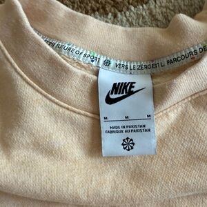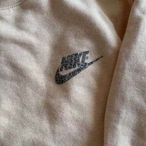 Classic Nike crewneck in a soft beige tone. Features iconic logo on chest. Ideal for everyday wear.