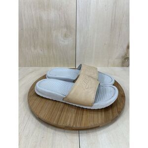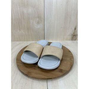 Nike Benassi JDI BP Tan Leather Sandal Slides Womens Size 9
