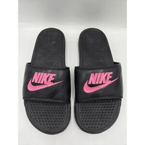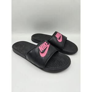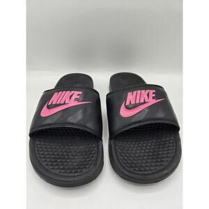 Nike Benassi Just Do It Slide Slip On Sandal Cushioned Black Pink Women's 9