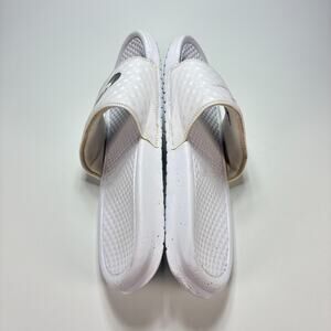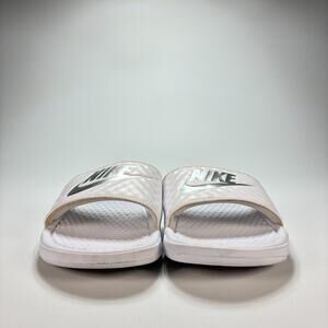 Nike Benassi White Silver Metallic Swoosh Logo Slide Sandals Women's Size 10