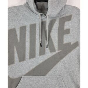 Nike Big Logo Mens Hoodie Large Gray Drawstring Pockets Cuff Logo EC