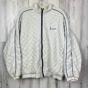 Nike Big Swoosh Quilted Full Zip White Windbreaker Jacket Size XL 16/18 90's