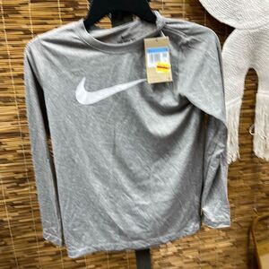 N Nike Big Kids Dri-fit Legend Logo-Print Long-Sleeve Training T-Shirt - Tumbled Grey