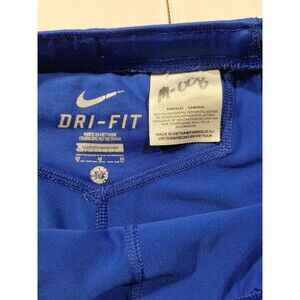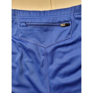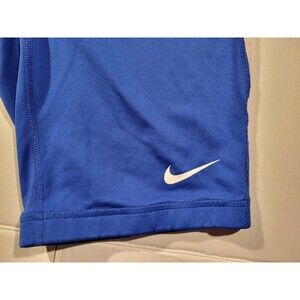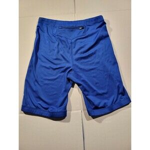 Vibrant bright blue compression shorts with white accents and back zipper pocket for storage. Comfortable and light weight design perfect for bike riding or running. Shorts have no holes, no rips, no tears. Overall great shape. See pictures for personal opinion.