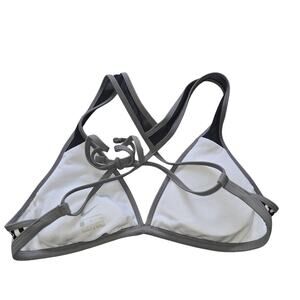 Nike Bikini Top Womens Small Black White Striped Triangle Cross Back Swim Logo