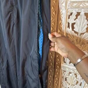The Nike Black 100% Nylon Soccer Lined Ankle & Quarter Leg Zip Track Pants for Men in size Medium is a versatile and durable piece of activewear. These solid black pants feature a drawstring closure, elastic waist, and straight leg style for a comfortable and athletic fit. Made with 100% nylon material, they are lightweight, wind-resistant, and water-resistant, making them ideal for various activities such as soccer, track and field, gym training, and basketball. With a retro 90s sporty theme and classic color scheme, these track pants are perfect for both casual wear and active pursuits.