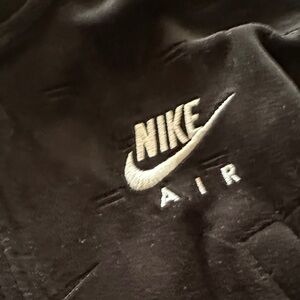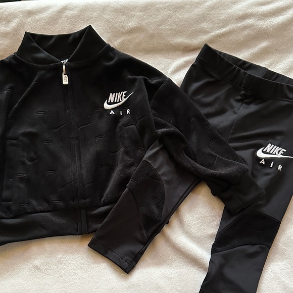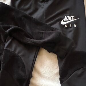 Sleek black tracksuit with Nike Air branding. Features zip-up jacket and matching pants.