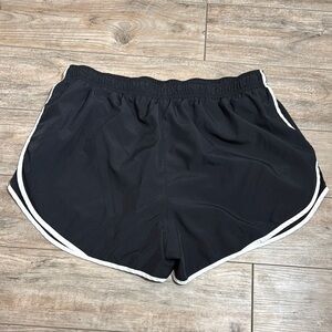 Experience ultimate comfort and performance with these Nike black athletic shorts, crafted from lightweight material perfect for sports and exercise. The classic design features a curved dolphin-style hem with contrasting white piping, ensuring both style and functionality. Ideal for any workout, these shorts offer a timeless look with modern athletic appeal.