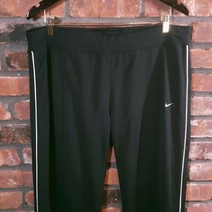 Stylish boot cut pants. Sleek black design. Nike logo on the side.