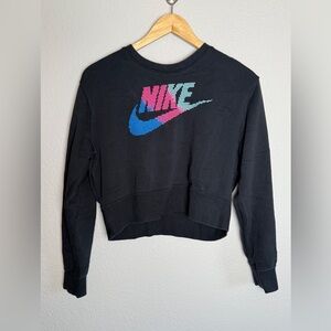 Nike Black Crew Neck Cropped Long Sleeve Sweatshirt Women's Small