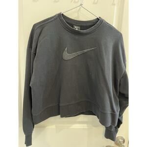 Nike Black Cropped Boxy Sweatshirt Oversized With Swoosh Tick Size M