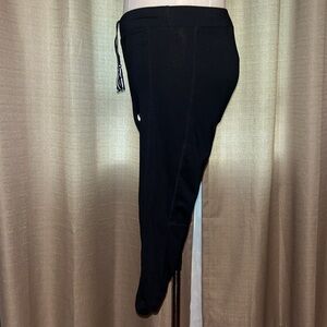 These black running capris have a stretch waist and drawstring with rear zipper pocket. Wear these for your next run or just for everyday wear!