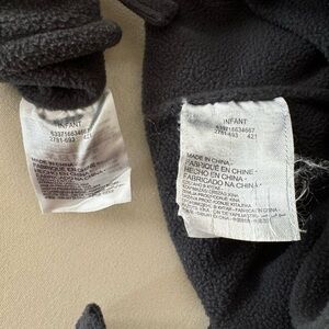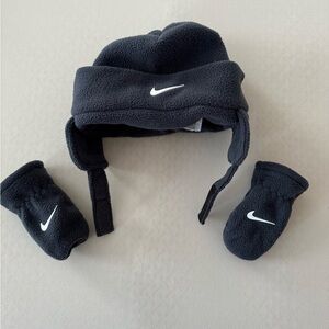 Cozy fleece hat with ear flaps. Matching mittens included. Iconic Nike swoosh logo.