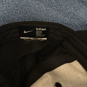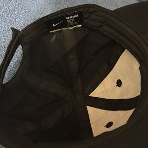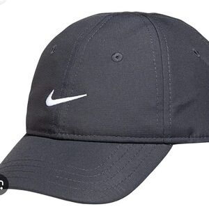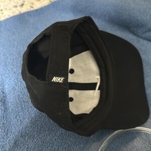 This Nike black hat showcases a minimalist design with a prominent logo on the front, offering a sleek and sporty look. The structured front panel maintains its shape, while the curved brim adds a touch of classic style. Perfect for any casual outing, this hat combines comfort and elegance effortlessly.