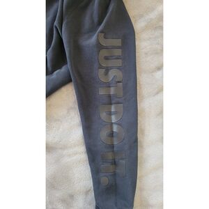 Nike Black Just Do It Full Zip Jacket Hoodie. Size medium. Experience the perfect blend of comfort and style with this timeless piece. Crafted from premium materials, this hoodie offers warmth and durability for everyday wear. The iconic "Just Do It" slogan emblazoned on the chest adds a touch of motivation and inspiration. Whether you're hitting the gym, running errands, or simply lounging around, this hoodie is a versatile addition to your wardrobe. With its sleek black design and classic full-zip closure, it's a must-have for any Nike enthusiast.