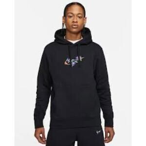 Size small from Nike. Black logo twist embroidered floral swoosh hoodie sweatshirt with kangaroo pocket. Preowned in good condition with no stains or tears. Light signs of wear throughout.