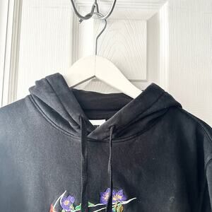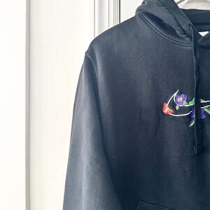 Nike Black Logo Twist Embroidered Floral Swoosh Hoodie Sweatshirt Women Small