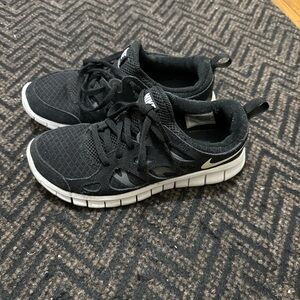 Stylish black sneakers with white accents. Breathable mesh upper. Ideal for sports and casual wear. used, good condition