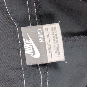 Nike Women's Black White Seam Detail Mid Rise Two Hook Zipper Front Closure Flare Leg Athletic Athleisure Pants. 100% Polyester. One Waistband Interior Mesh Pocket. Embroidered Front Logo Patch. Few Spots Per Photos. Measurements approx. Flat Lay. Waist: 15.5, Rise: 9, Hips: 21, Inseam: 31, Hem Opening: 10". Size M Color May Vary Due To Lighting.