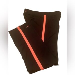 Black Athletic Pants NWT with bright peachy orange stripe. M