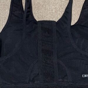 Experience ultimate comfort and support with the Nike Black Sports Bra, designed for medium-impact activities. Made from moisture-wicking performance fabric, it features wide shoulder straps and a sleek racerback style for a secure fit. Perfect for both workouts and everyday wear, this bra combines functionality with a classic, versatile look.