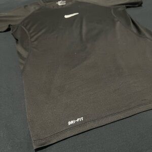 Sleek black Nike tee with iconic swoosh. Ideal for active wear. Compression shirt.