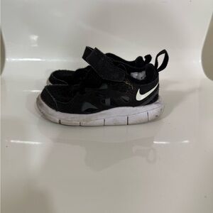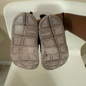 These Nike sneakers feature a sleek black canvas upper with a convenient slip-on design, perfect for everyday wear. The rubber sole provides durability and comfort, making them ideal for casual outings. With their minimalist style, these sneakers offer a versatile look that pairs effortlessly with any casual ensemble. Pre owned condition.