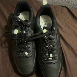 Experience the perfect blend of style and durability with these Nike black sneakers. Featuring a sleek leather upper and a contrasting white midsole, these shoes offer a clean and versatile look for everyday wear. The sturdy design ensures long-lasting comfort and support.authentic brand new