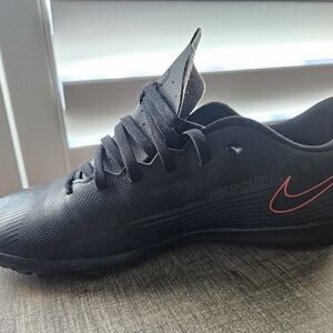 Nike Mercurial Black soccer cleats, NEW. Never worn, but do not have the original box. My son outgrew them before he could wear them. See pictures for details.