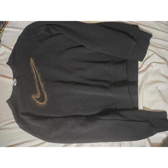 Nike Black Sweatshirt with Gold Swoosh Logo - Medium