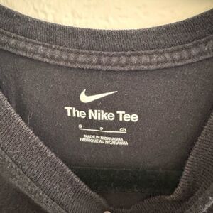 Black Nike t-shirt featuring bold green 'Just Do It' print. Classic and stylish. Youth boy Tee size small