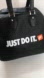 Nike black bag featuring 'Just Do It' logo in excellent condition. May be suitable as bowling bag.