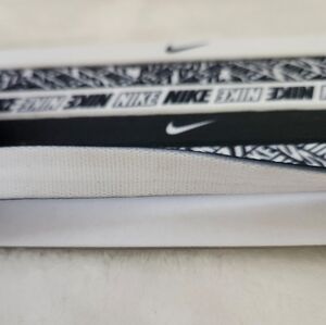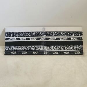 Nike Black White Logo Non-Slip Silicone Headbands. Set of 6. Stretchy elastic band for a secure & comfortable fit, non-slip silicone grips your hair, keeps band in place & prevents slipping. 0.20" H x 0.43" W x 8.66" L. Made of polyester, rubber & silicone. Band new without tags!