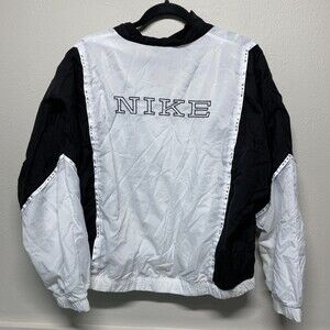 Nike Black White Y2K Full Zip Long Sleeve Windbreaker Size Large