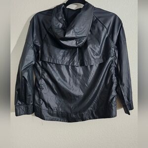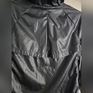Stylish black windbreaker jacket by Nike. Features a sleek design with a front zipper.