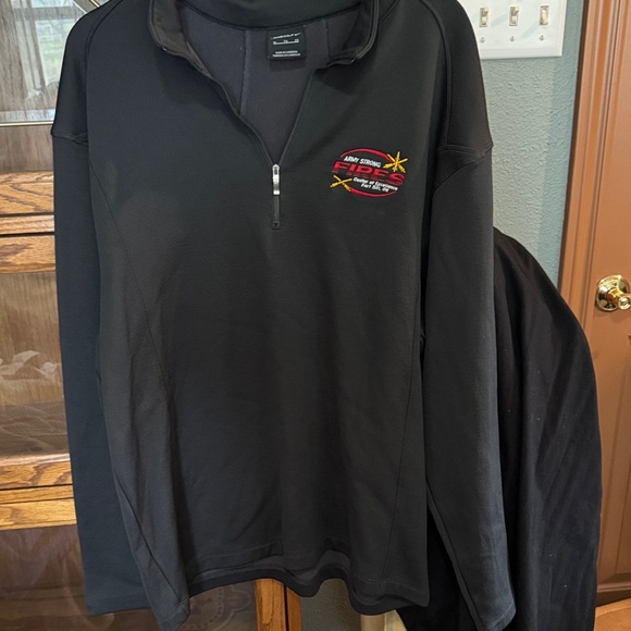 Stylish black Nike jacket. Features a half-zip design. Comfortable and versatile.