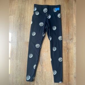 These rare Nike leggings are a total vibe! Featuring a bold black and white yin-yang print with celestial details, these stretchy cotton-blend leggings combine sporty style with cosmic energy. Size Small. In good pre-loved condition.