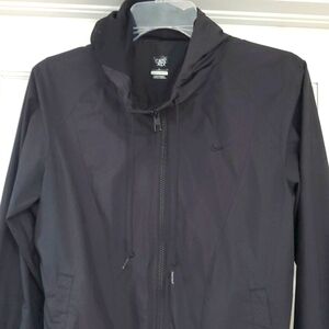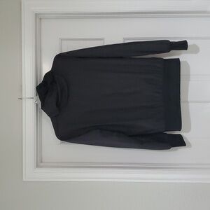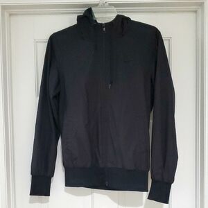 Stylish black zip-up hoodie with a hood and front pockets. Perfect for casual wear.